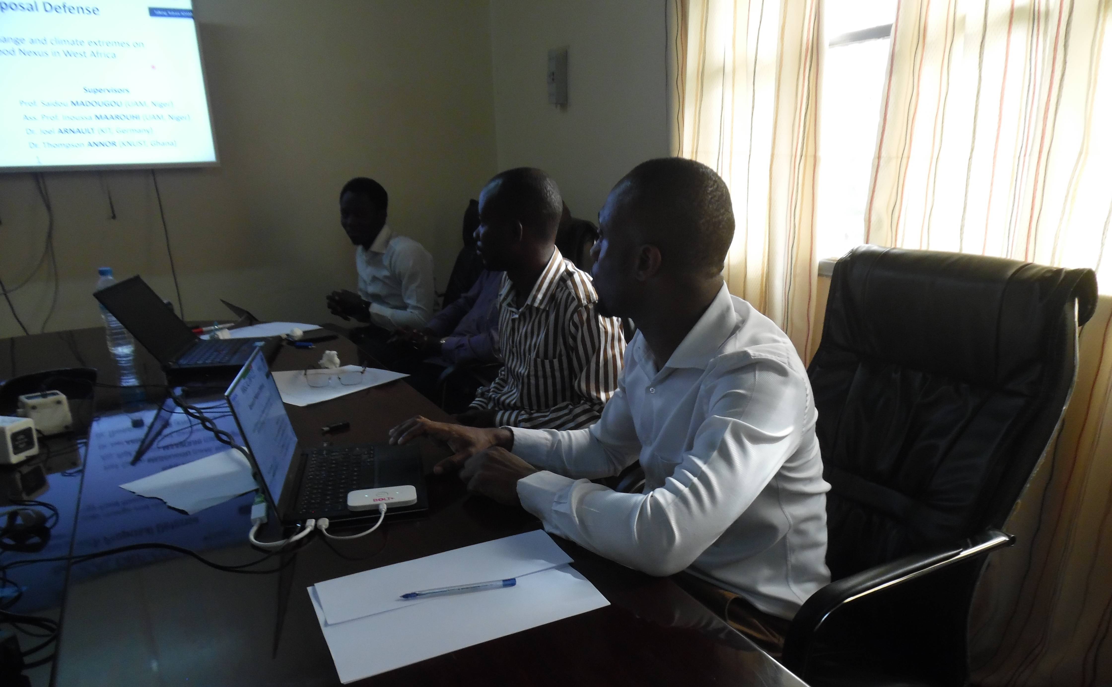 The research proposal defense of the first batch of the Doctoral Research Program on Climate Change and Energy (DRP-CCE) took place on the 12-13th August 2020 at the “Complexe Scientifique Prof. ABDOULAYE Alassane”, Universite Abdou Moumouni de Niamey. The program saw coordination between the host institution, WASCAL headquarters in Accra, Ghana, the competence center in Ouagadougou, Burkina Faso, advisors board members of Wascal DRP-CCE and experts in the field of Climate Change and Renewable Energy from West Africa and Germany. Notably in the advisory committee are: