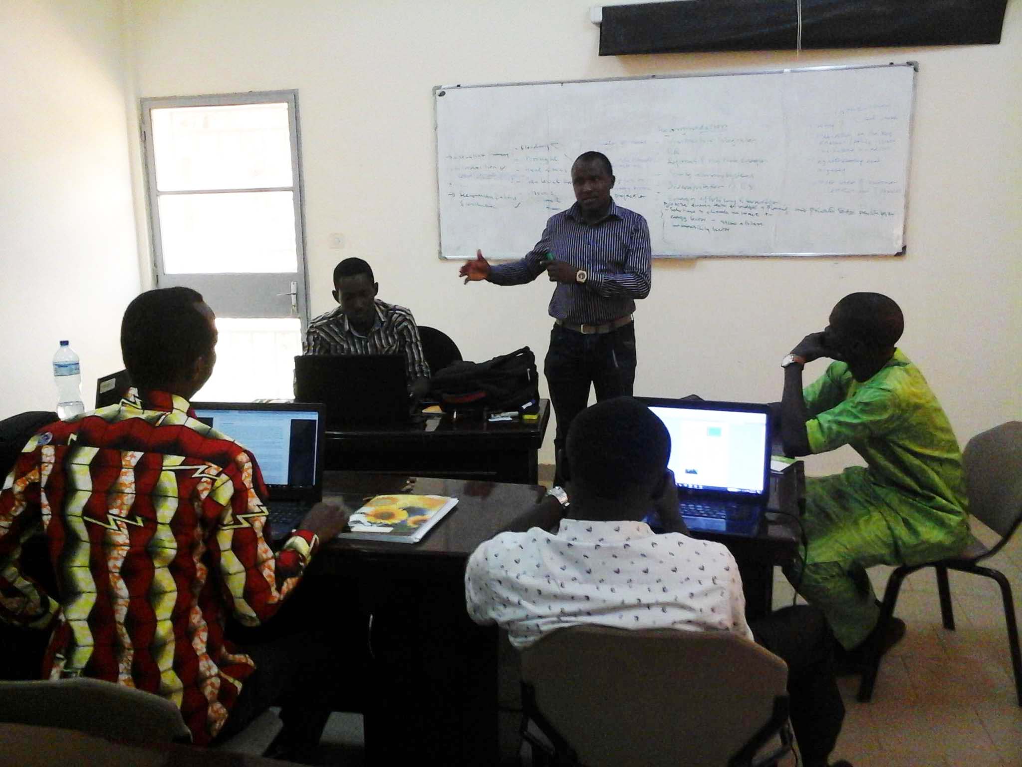 A component focusing on research methodology conducted during the second week of workshop, animated by Prof. Harouna (Niger) and Prof. Adamou (Niger).